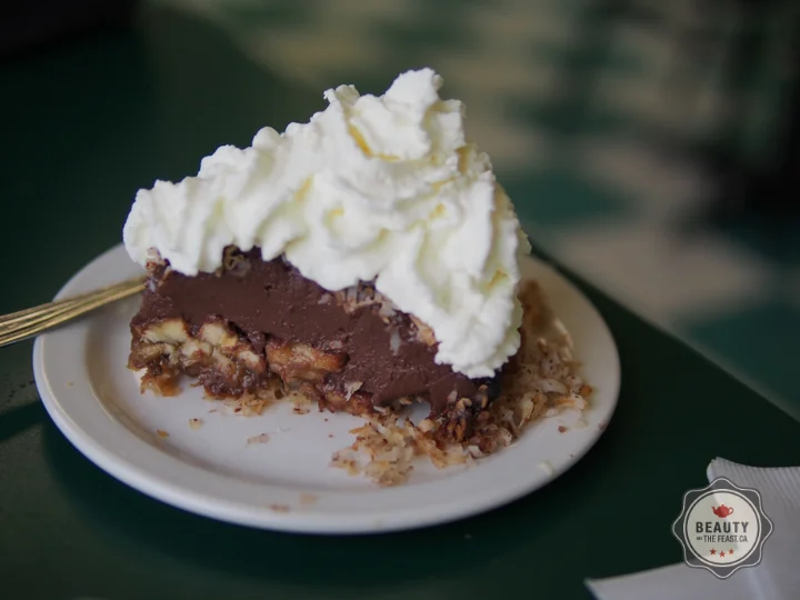 Turns out Chilliwack is notorious for more than just sweet summer corn. In their tiny airport, lies a some coffee shop with affordably priced diner food and spectacular pie. Pies can be purchased by the slice but you can smuggle an entire pie too for between $22-$25. Their motto, I fly for pie is well earned. People from all over the Pacific Northwest just to pick up a slice of pie. Altogether they offer 60 types of pie.
