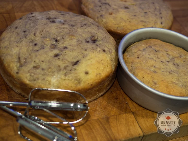 My mother loves bumble bees so this year I wanted to push my limits and make her an extra special bumble bee cake. I found a popular banana cake recipe at allrecipes and adapted it. It's especially important to use ripe bananas to get a sweet cake rich in banana flavour. You can save bananas for this baking project by freezing peeled bananas once they get nice and ripe.
