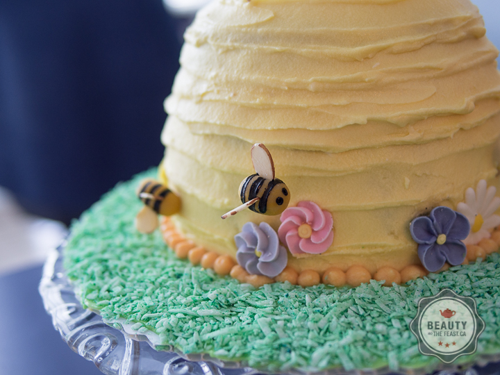 One of the challenges of baking for our family is to dance the line of being dessert enough for my hubby but not too sweet that my chinese family can't stand it. I reduced the amount of sugar in the cake, and used a malleable honey buttercream that allowed the musky honey shine through without being achingly sweet. The recipe for it is here.