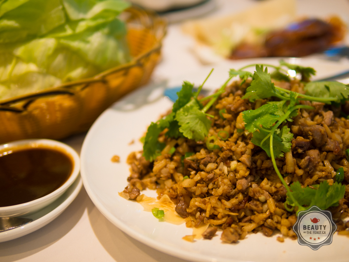 We splurged on peking duck and it did not disappoint. The crispy duck is sliced thinly and served with scallion, pancakes, and bean sauce.
